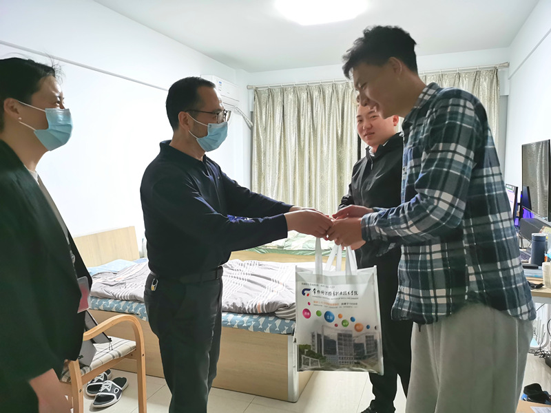 4月8日晚,学校党委委员、副院长邓凯、张震宇走访慰问奋战在疫情防控一线的辅导员、看望了备战技能大赛的学生,送去了工作指导与温暖关怀,学生工作处处长李洁琦、副处长李圣峰参加了慰问活动。