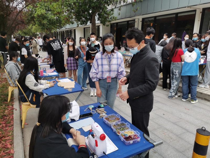 物尽其用、绿色生活、你我共创。2022年5月11日,校园二手物品跳蚤集市在师生们的翘首以盼中如期开市,给疫情下美丽安静的校园增添了一道靓丽青春的色彩。校党委副书记、院长洪霄、学工处处长李洁琦、创业学院副院长王磊以及二级学院、职能部门相关领导也纷纷走入集市,与出摊的同学们亲切交流,了解他们的参与体验和实践收获。与此同时,洪霄还走进入驻创业园的实体运行项目,跟师生们进行了深入沟通交流,了解他们的创业现状和发展规划,他对师生们积极参与创新创业实践表示充分肯定,希望同学们坚定目标与信念,勇于突破,争取在创新创业道路上一往无前,做出特色、做出亮点、做出品牌。