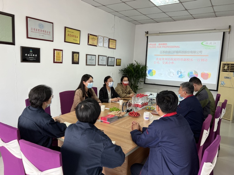 纺织学院党总支书记高妍介绍了纺织学院的学科建设、人才培养等方面情况,表示将深入企业调研,及时了解企业用人需求的发展变化,及时调整人才培养方案,全面深化校企合作,进一步加强与企业的紧密对接,开展多种育人形式,为企业提供更多优质人才。高妍表示,感谢多年来常州欣战江特种纤维有限公司对纺织学院办学的大力支持,已经有许多毕业生在企业扎根,与企业共成长,并取得了优异成绩,希望双方在已有合作基础上,进一步拓宽合作广度和深度,聚焦人才培养、科学研究、成果转化等领域,大力推动产教融合、产学研合作。 赵玲珍表示,开展访企拓岗行动是学校强化校企衔接、深化校企合作的重要途径,也是学校提升人才培养质量,促进毕业生就业的迫切需求。企业对学校人才培养质量的肯定与认可,进一步增强了学校更好地落实人才培养主体责任的动力与信心,学校党委希望常州欣战江特种纤维有限公司能一如既往地关心和支持常纺学子的成才成长,为他们提供更多合适的就业机会。学校将根据社会发展大局、企业和行业发展需求,不断优化学科专业布局,深入推进校企科研合作,持续提升人才培养质量,为常州欣战江特种纤维有限公司当好“动力源”、“助推器”、“人才库”。