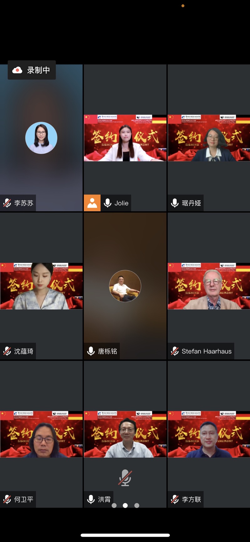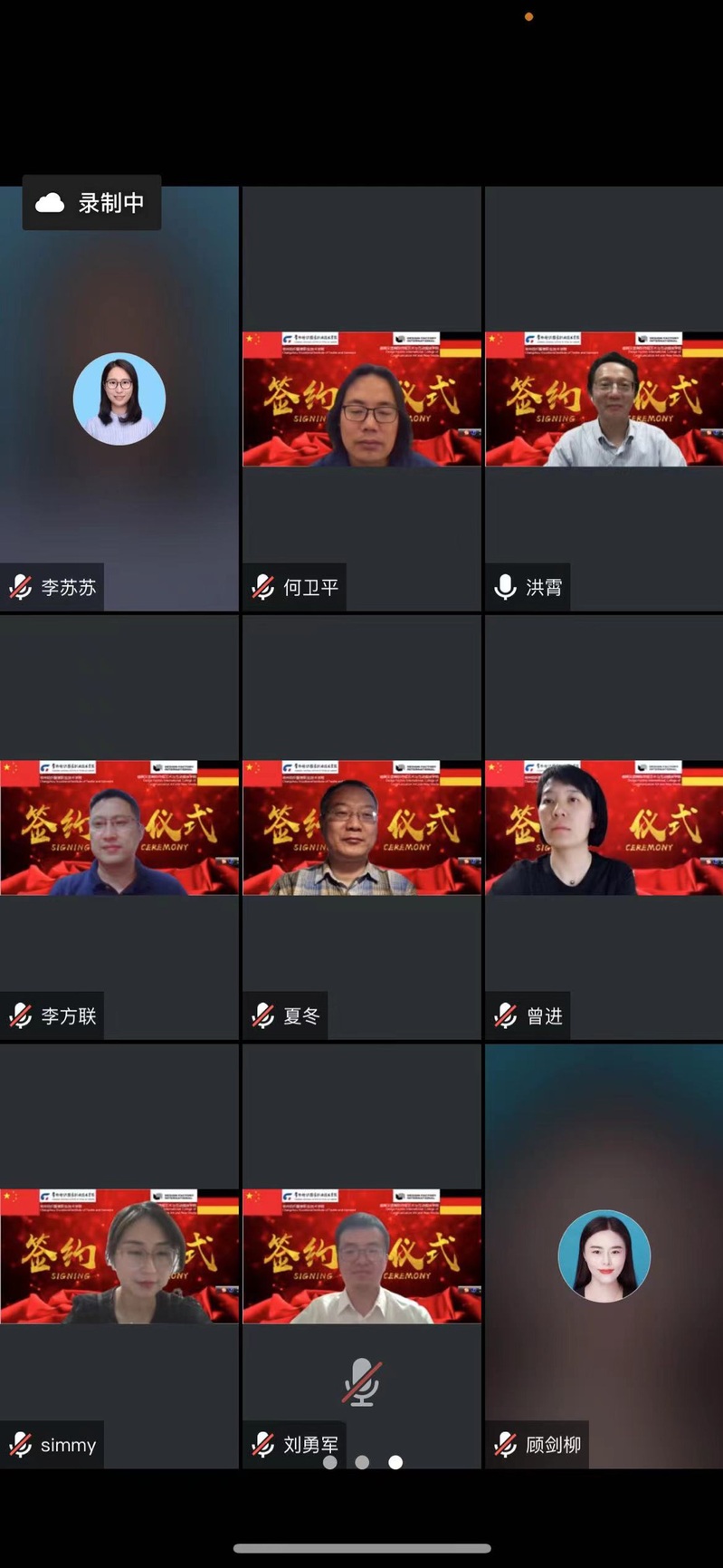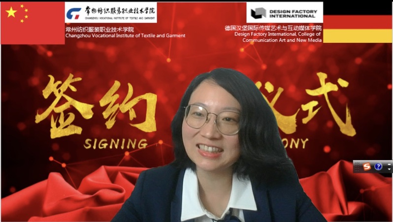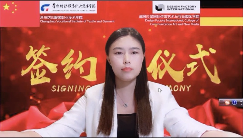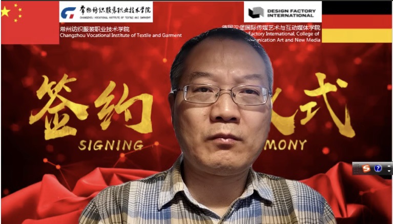 洪霄代表常纺院再次对德国汉堡国际传媒艺术与互动媒体学院及中德产业创新与合作中心来宾表示热烈的欢迎和诚挚的问候。致辞中,他简要介绍了学校基本情况及学生培养成绩,他表示,学校正在向培养纺织服装专业人才的方向不断努力。合作前期常州中德产业创新与合作中心有限公司发挥了很好的桥梁作用,在其对接下,常纺院即将与DFI在专业、课程、教学及师资团队等多个领域开展合作。希望双方发挥各自优势,共同努力,在两校甚至两国之间,有效促进职业教育领域的交流与合作。洪霄表示,期待在疫情过后,双方能在德国或者中国实现面对面的交流!