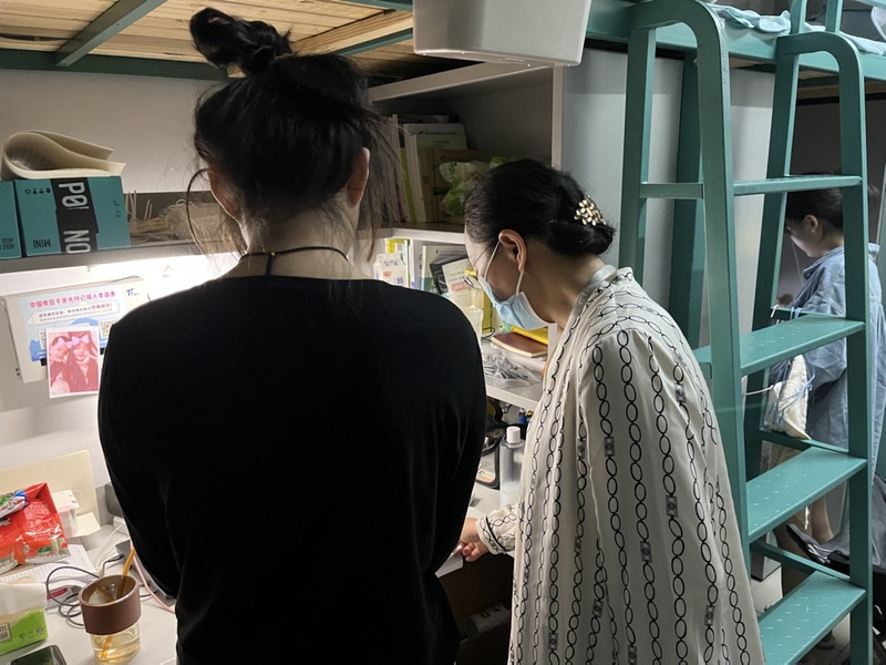 为切实做好疫情防控新形势下的学生管理工作,及时了解学生的思想动态、心理状况及学生宿舍卫生情况,确保学生管理工作有序、平稳开展和推进,5月28日晚,校党委委员、副院长赵玲珍、纺织学院党总支书记高妍、经贸学院党总支书记林洁、人文学院党总支书记韩兰娟、纺织学院副院长卞克玉、创意学院辅导员朱文彬、机电学院辅导员王心等老师深入走访36栋学生宿舍,为学生送去关心和问候。