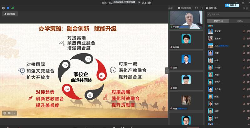 接下来,他重点从立德树人、守正创新、融合创新、改革创新四个方面进行了阐述,指出立德树人是实现复兴梦想的教育初心;守正创新是实现复兴梦想的理性价值;融合创新是实现复兴的最优策略;改革创新是实现梦想的理想路径。最后,对创意学院全体教师提出三点期许:一是坚持厚积薄发,跑出发展的加速度;二是永葆理想信念,跑向奋进的终点站;三是善于把握时代,跑过迷茫的弯道期。他强调创意学院要做好未来五年、十年的发展规划,找对位置,找准目标,答好在常纺院复兴之路上的时代问卷,跑出常纺院复兴之路上的最好成绩。