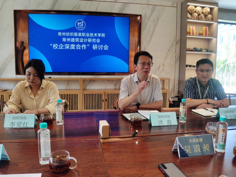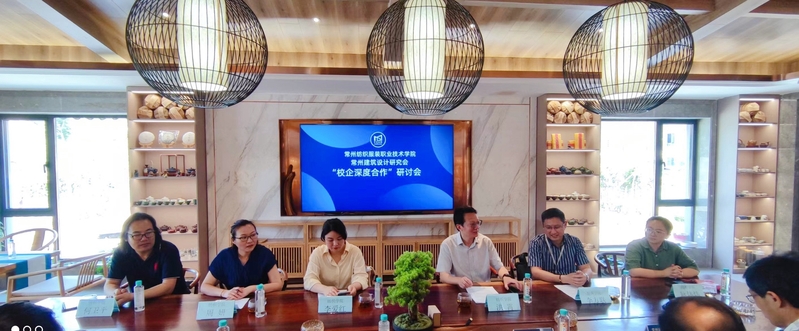 洪霄院长一行首先与常州大成装潢有限公司董事长吴震昶、人事部经理顾志芬,常州建筑设计研究会秘书长蒋建平、常州装饰材料协会秘书长周澄、常州装饰装修行业协会秘书长陈锦芬等进行了座谈。常州大成装潢有限公司董事长兼常州建筑设计研究会会长吴震昶代表行业协会向洪院长一行介绍了行业协会运作机制、企业发展战略、对高素质人才的需求、校企深度合作的设想等。洪霄院长就如何有效开展校企深度合作、校企如何共育高素质人才、学校如何有效服务行业企业等提出了许多建设性意见。然后双方就校企合作项目“未来建筑产业学院”的建设进行了深入交流。座谈会之后,洪霄院长一行在吴震昶董事长陪同下,参观了“大成梦工厂”“大成家魔方”。