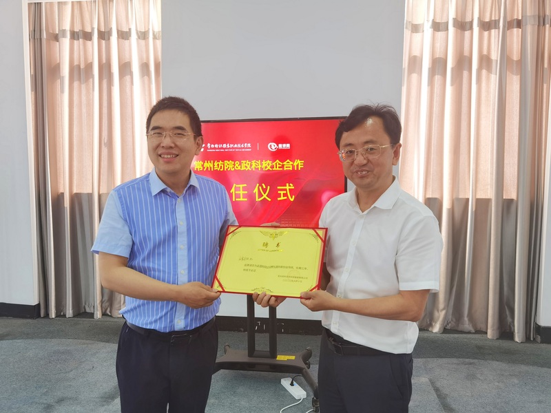 2022年6月10日,校党委委员、副院长张震宇,科技处处长李爱红,创业学院副院长王磊一行前往新动力创业中心举行“常州纺院创新创业孵化平台”合作签约授牌仪式。常州天宁高新技术产业开发区指挥部常务副主任陈韬、天宁高新区规建局局长毛俊伟、天宁区人社局就业管理中心副主任徐忆伟、常州政科信息科技服务有限公司总经理章国烈、运营主管吕涵雨和戴颖岑等参加了此次会议。