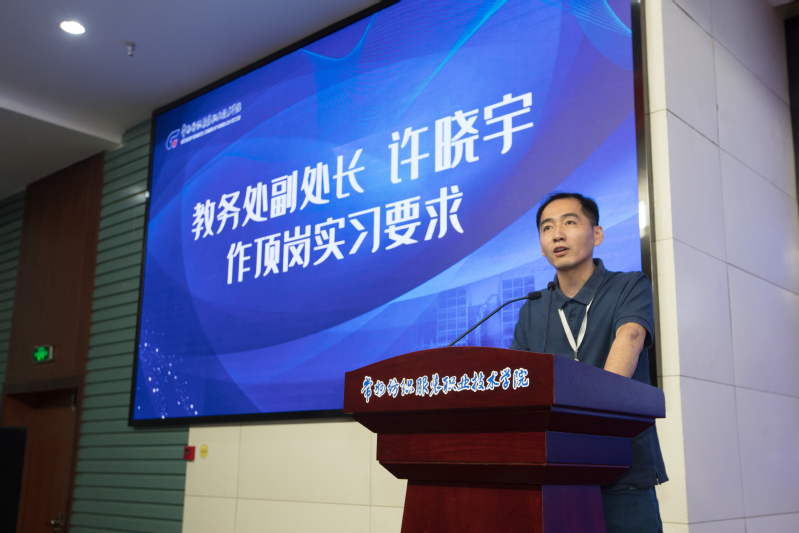 最后,学校党委委员、副院长张文明做重要讲话,他指出,学生实习的本质是教学活动,是实践教学的重要环节,也是为了维护学生、学校和实习单位合法权益,提高技术技能人才培养质量,推进现代职业教育高质量发展,更好地服务产业转型升级,促进学生高质量就业创业。他希望同学们以崭新的精神风貌,朝气蓬勃的工作热情,精益求精的学习态度,在实习中学习更多、更直接、更实际的专业知识和技能,传承工匠精神,做个匠心青年,圆满完成顶岗实习任务。