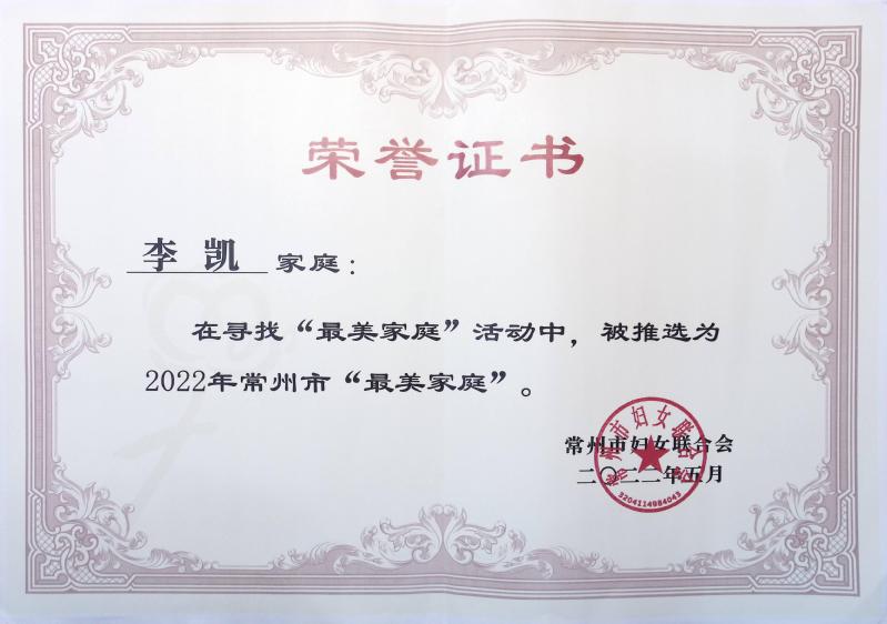 为大力培树践行新时代家庭观和弘扬社会主义家庭文明新风尚的家庭典型,以实际行动迎接党的二十大胜利召开,2022年市妇联在全市范围内开展常州市五好家庭及最美家庭推选活动。永利官网推荐的李凯家庭、徐静家庭被评为常州市最美家庭。两个“最美家庭”在平凡生活中践行美德善行,传承好家教,弘扬好家风,推动形成爱国爱家、相亲相爱、向上向善、共建共享的社会主义家庭文明新风尚,以实际行动为培育和践行社会主义核心价值观贡献力量。图/文:梁婵 审核:胡艳妹