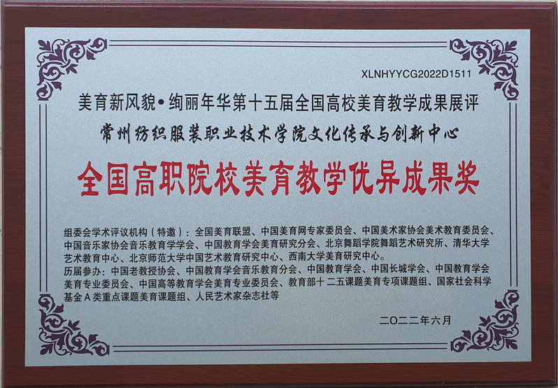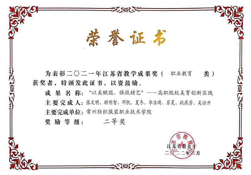 9、“以美赋能、强技精艺”高职院校美育创新实践获江苏省教学成果二等奖。