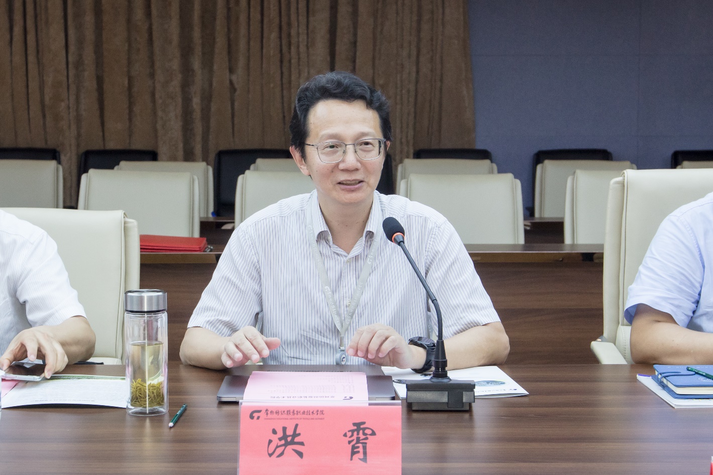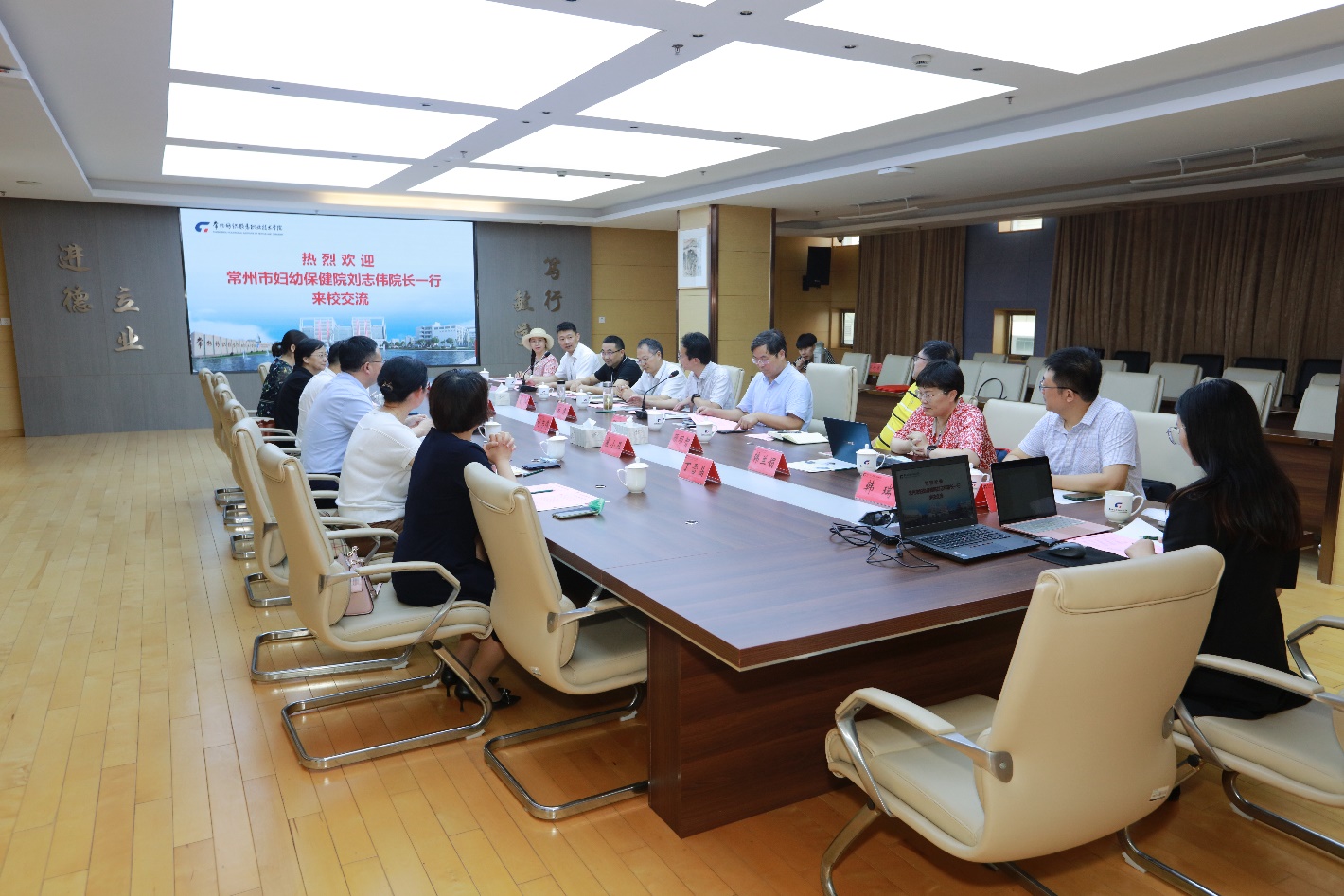 7月4日,常州市妇幼保健院院长刘志伟、副院长秦志强率保健部一行来到常州纺院人文学院洽谈深度合作意向,校党委副书记、院长洪霄率领党委委员、副院长张文明及教务处、科研处、文化传承与创新中心、人文学院党政班子及专业团队教师参加,会议由人文学院院长陈辉主持。