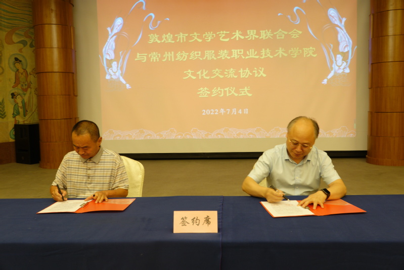 7月4日,永利官网与敦煌市文联与文化交流合作框架协议签订仪式在敦煌宾馆顺利举行,这是继敦煌市文联恭贺永利官网牵头组建全国职业院校美育联盟之后,两地单位又一次“亲密接触”。敦煌市政协副主席赵廷乾受邀见证了吴访升书记与敦煌市文联副主席吴勇签约。邓凯副院长向敦煌市文联赠送永利官网教师艺术作品。活动由敦煌文联副主席姜生治主持。永利官网与敦煌市文联将在共同探索美育教育的框架内,积极开展文化交流合作。敦煌市文联还牵线促成永利官网与敦煌相关学校开展合作交流,邓凯代表学校签订合作协议。