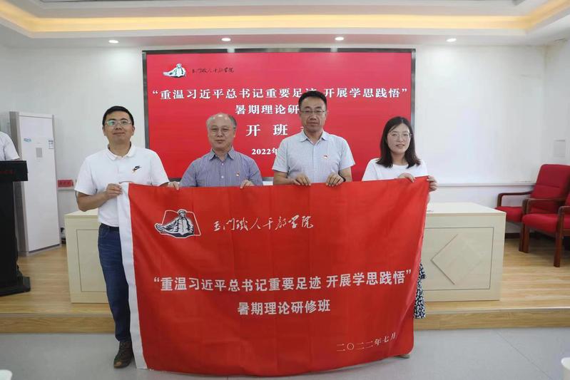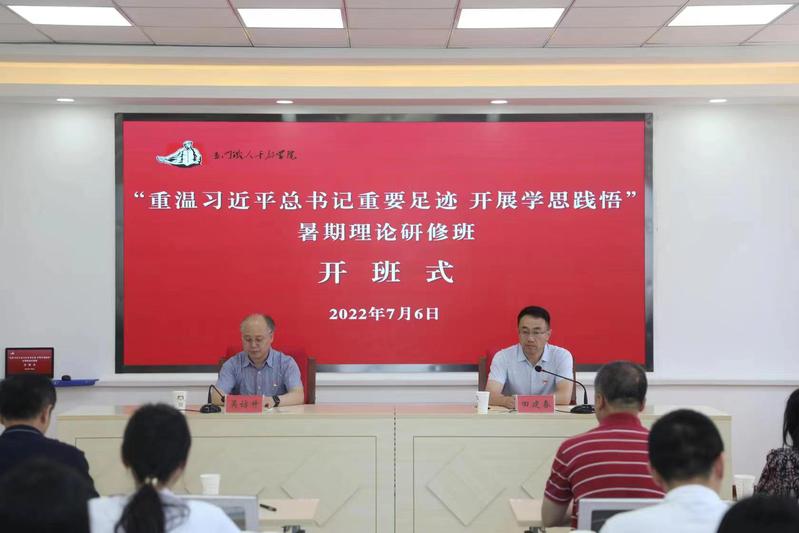 2022年7月6日,永利官网“重温习近平总书记重要足迹开展学思践悟”暑期理论研修班在玉门铁人干部学院顺利开班。党委书记吴访升、玉门铁人干部学院副院长田建春出席开班式。