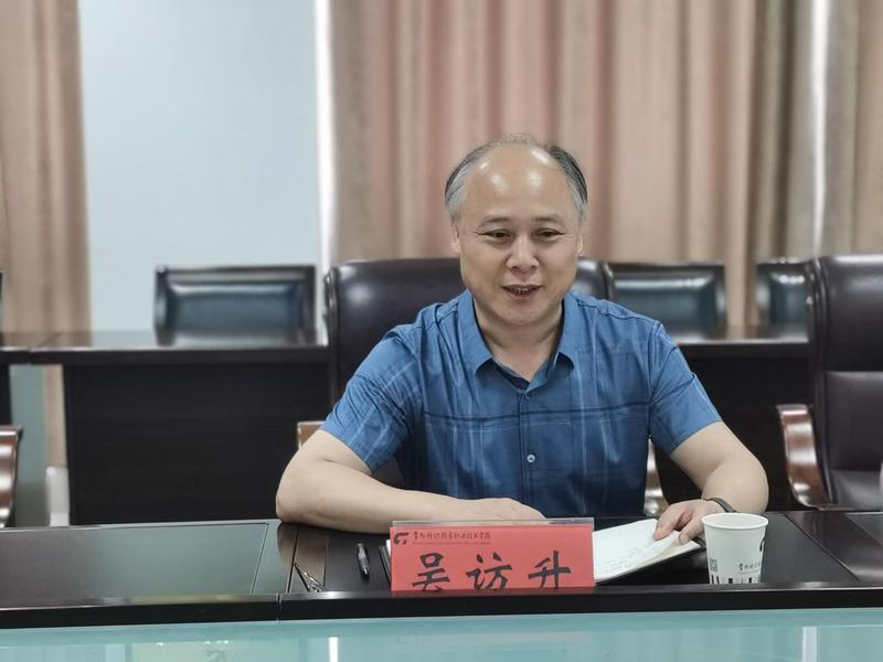 吴访升首先介绍了国家乡村振兴重点帮扶项目--东部省份“组团式”帮扶“西部县”的概况和需求,提出:援青干部能够克服种种困难,顾全大局,服从组织安排,积极参加支援任务,体现了较高的政治思想素质和责任担当,希望陈辉同志深入学习强国建设、共同富裕的战略部署,在援青新岗位上加强东西部协作,把对口支援作为干部能力提升的磨刀石、学校融合发展的大舞台;提出三点要求:“不负使命,出色完成帮扶任务;不负时代,用‘共同富裕’武装思想;不负厚望,展现纺院和江苏干部的形象。”同时,从人文学院发展和家庭情况两方面,明确相关部门和人员要全力以赴支持帮扶工作,不折不扣地为援青干部家属排忧解难。