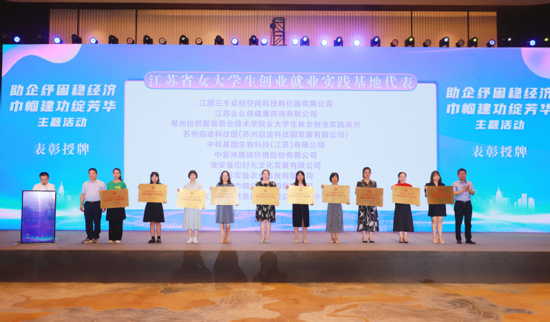 近日,永利官网被省妇女联合会、省人力资源和社会保障厅、省女企业家协会联合评为江苏省女大学生创业就业实践基地,据悉,全省共命名118个基地,其中高校10个。7月21日,在副省长胡广杰出席的“助企纾困稳经济 巾帼建功绽芳华”主题活动上,永利官网作为唯一高校代表被授牌。