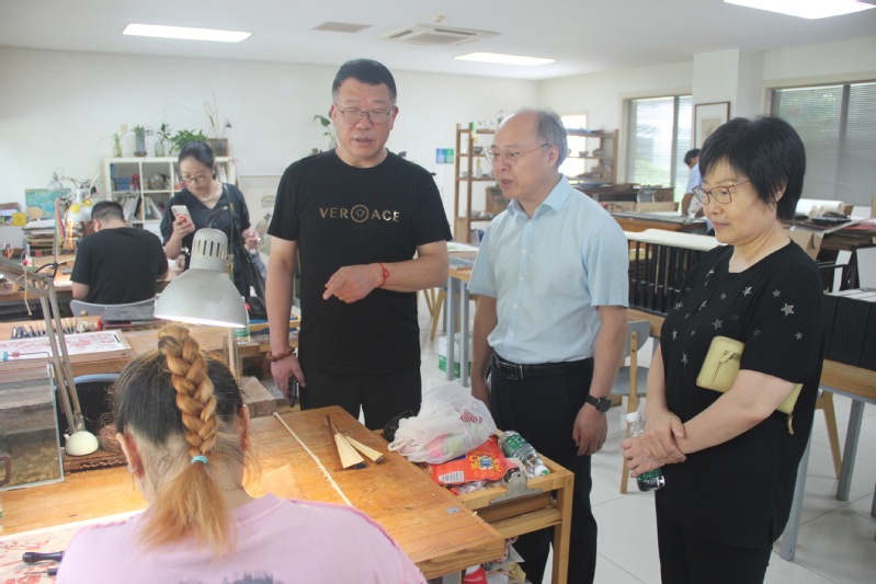 之后,孙丽华书记还陪同吴访升一行实地考察了天工存艺坊(苏绣)、桃花坞木刻年画社、学校美术馆等场馆。