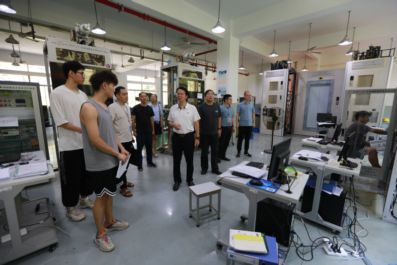 洪霄一行先后走访了“服装设计与工艺”、“智能电梯装调与维护”、“创新创业”国赛集训基地,看望正在备赛集训师生,与师生们亲切交谈,深入了解备赛训练和生活情况,洪霄代表学校对指导教师和参赛学生不惧酷暑、辛勤付出、专心备赛给予了充分肯定,并叮嘱师生们注意防暑,做好疫情防护,鼓励大家齐心协力、精益求精,争取赛出最好成绩。
