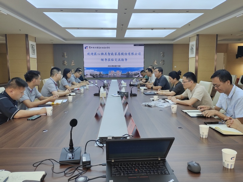 8月10日下午,匠心独具智能家居股份有限公司人事总监吴云娟、集团科技创新部经理焦长平、智能化改造项目总监史浩及骨干工程师一行来校交流合作,常州市科教城科技成果转移转化中心主任张维陪同。永利官网党委委员、副院长张文明,科技处处长李爱红、机电学院副院长廖定安、相关专业的博士、老师一起参加了会议,会议由机电学院副院长廖定安主持。