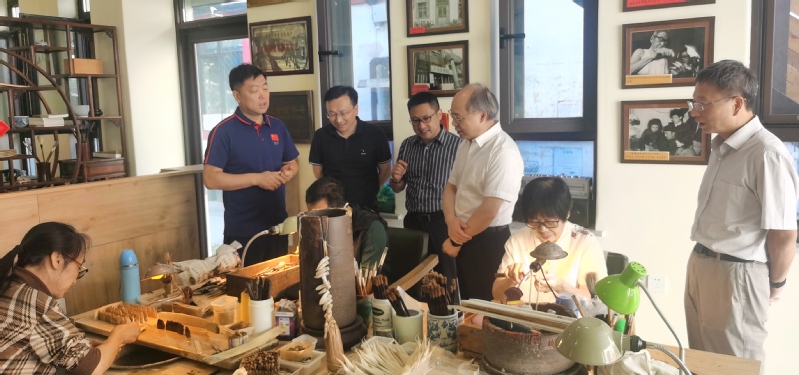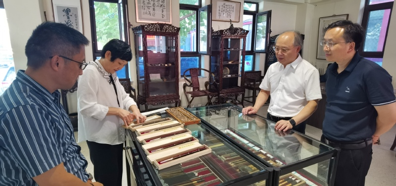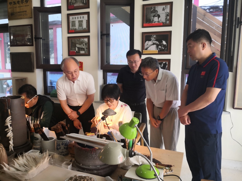 吴访升书记一行在邓永久的带领下,首先参观了由邓永久牵头创办沈阳笔墨博物馆,馆里全景展示了中华百年老字号“胡魁章笔庄”制作毛笔的流程,大家现场体会到这份古老技艺历经百余年,依然古法精良,代代相传的匠心,领略了“古法制笔 万毫齐力”百年胡魁章的迷人魅力。
