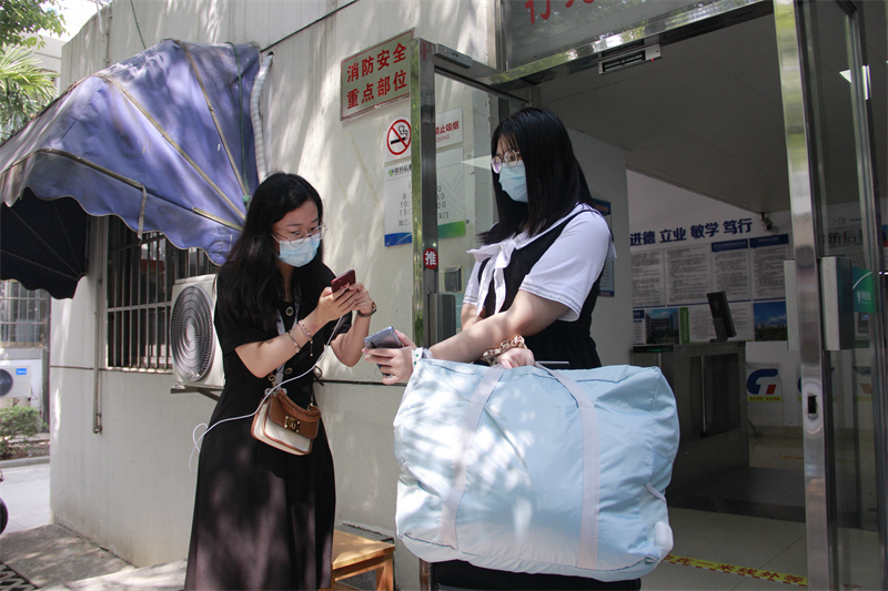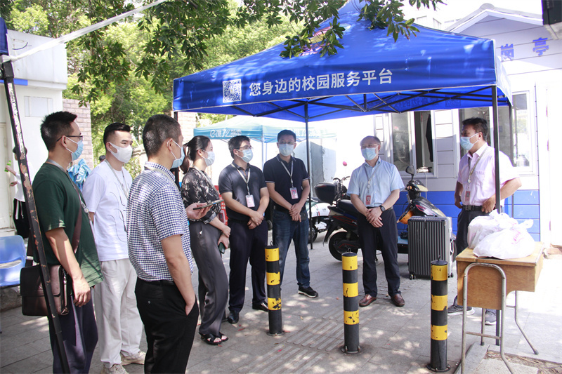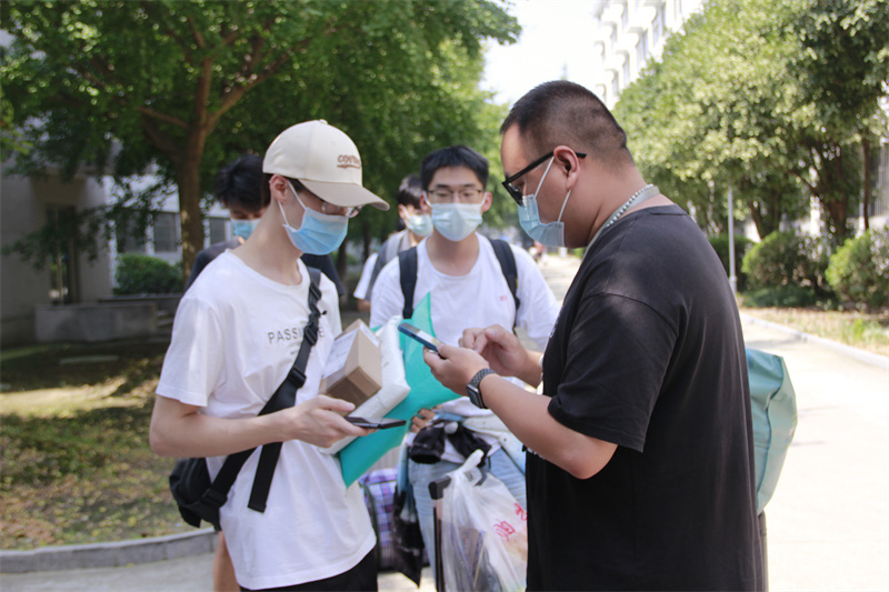 报到当天,学校党委书记吴访升深入一线,带领党政办、学生处、保卫处等相关职能部门负责人到现场走访察看返校接待工作。考虑到天气炎热,学生旅途奔波,学校根据宿舍分布,科学合理设置返校报到点;通过智慧校园系统,提前收集学生“健康码”“行程码”及48小时内核酸报告,经班主任、网格辅导员审核同意后即可 “一码通办”“立扫立办”,快速入寝,解决学生返校最后100米难题。每栋宿舍楼下,辅导员们轻快的一声问候:“同学,请扫码”,让学生倍感温暖。
