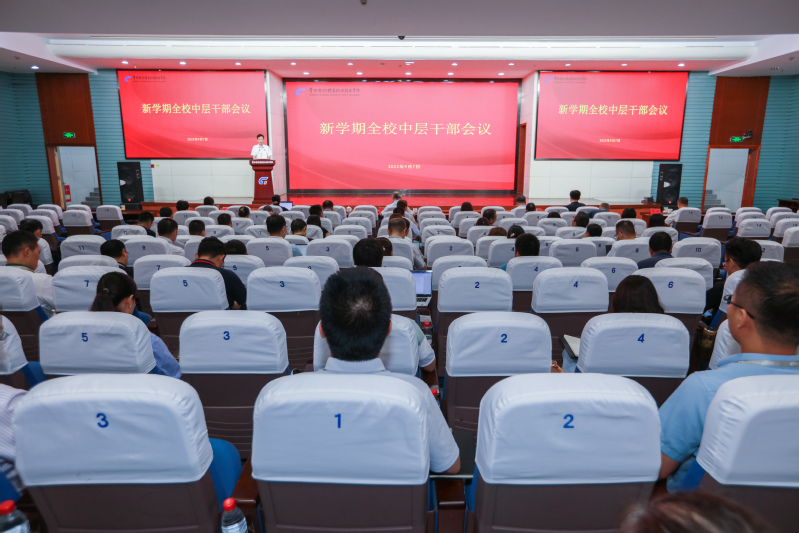 9月7日下午,学校在图文报告厅召开新学期全校中层干部会议。学校领导班子、全体中层干部参加了会议。会议由党委副书记、纪委书记王顺明主持。