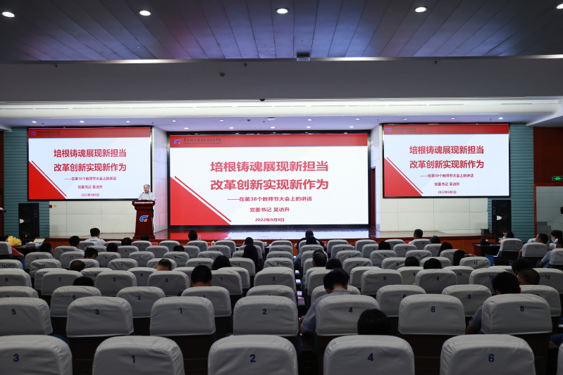 2022年9月10日是我国第38个教师节,也是党的十八大以来第10个教师节。春华秋实,桃李芬芳;金秋沐欢笑,九月桂香飘。9月9日下午,学校在图文报告厅召开第38个教师节庆祝暨表彰大会。大会设置主会场和分会场,校领导、各二级单位负责人、来校工作30年、从教30年教职工、退休教师、新教师和教职工代表受表彰人员等在主会场就坐,其他教职工在各二级单位分会场通过观看现场直播方式参会。大会由学校党委委员、副院长张震宇主持。