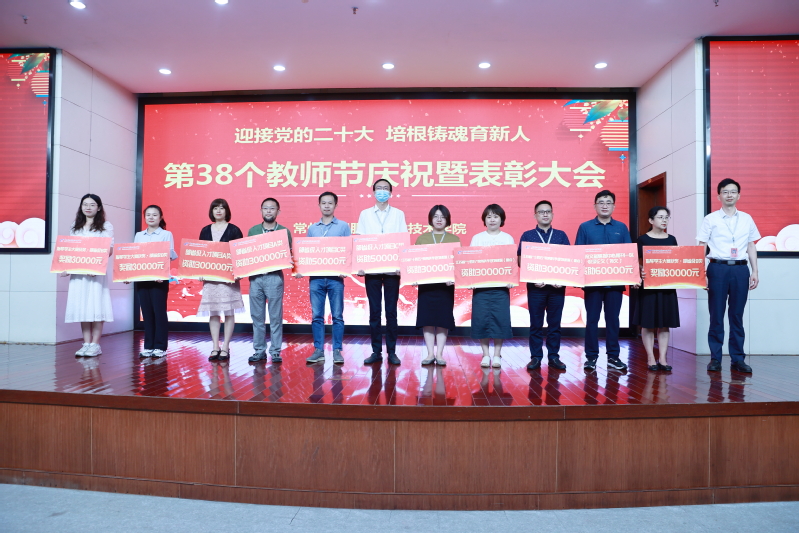 大会在庄严的国歌声中拉开序幕。经贸学院会计2132班张洁凡同学代表全校10000余名学生向全体教师致以节日的祝福和崇高的敬意。大会先后表彰了2022年度学校师德标兵、优秀教师和优秀教育工作者,抗疫先进集体和先进个人,2021年9月以来省级及以上重点项目成果、荣誉表彰,2022年1月以来高水平发展关键绩效成果,从教30年和在常纺工作30年人员,学校党委班子成员分别为各类受表彰人员颁发了荣誉证书及奖杯。大会还为退休教职工举办了荣休仪式,学校党委书记吴访升为荣休教师颁发了退休证书,新教师代表为荣休教师献上鲜花。会上,学校退休教师代表张锡春、优秀团队代表徐风、常州市师德模范冯益芙、学校优秀教师代表夏莹、优秀教育工作者代表侯艳洪依次上台发言,深情表达他们对教师职业的热爱,以及以实际行动用爱施教、用心育人的收获与感悟。新入职教师在领誓人的带领下庄严宣誓,郑重承诺为学生的全面发展奉献智慧与力量,为党和人民的教育事业而努力奋斗,全校教师再一次接受入职宣誓教育。