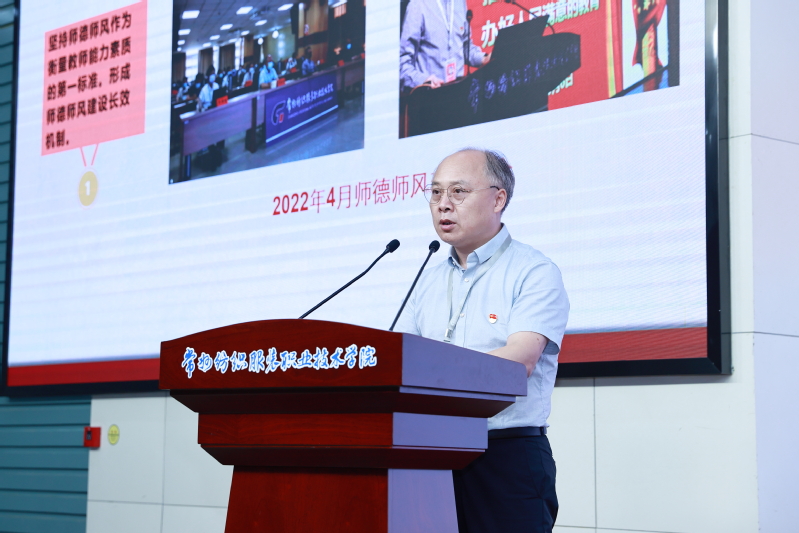 最后,学校党委书记吴访升进行了总结讲话。吴访升代表学校党委行政,向辛勤工作在学校教学、科研、管理和服务一线的全体教职工表示衷心的感谢,向新入职的教师表示诚挚的欢迎,向为党的教育事业和学校改革发展做出贡献的离退休老同志表示亲切的问候。吴访升指出,人才是一切事业的根本。一年来,学校各部门、各二级学院采取了一系列战略性举措,推进了一系列变革性实践,实现了一系列突破性进展,取得了一系列标志性成果。吴访升要求,全体教职工要提高政治新站位,争做践行新发展理念的引路人;要服务国家战略,争做中华民族“梦之队”的筑梦人;要涵养高尚师德,争做培养堪当民族复兴重任的“大先生”;要凝聚强大合力,争做常纺复兴行动的探索者。