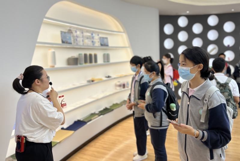 本次活动分为参观与实践体验两个部分。首先,参观了纺织科技文化馆。场馆分为耕织博学、纤维织语、非遗拾光、织梭光景、科技织梦、经与纬说六个篇章。在纺织学院讲解员专业而精心地讲解中,孩子们仿佛徜徉在纺织历史的发展长河中,感受着缛丽绚烂的民族文化和精湛绝伦的传统技艺,惊叹着现代科技创新助力纺织品“上天入海”的神奇魅力;接着,参观了8号楼4楼的服装工艺室,同学们带着对服装制作及工艺的诸多好奇与疑问,现场向任课老师及学员们进行了深入而仔细的请教,期间,在老师的帮助与指导下,进行了一些缝纫的简易实操,时而用笔记录了操作步骤,时而用手机拍摄视频,兴致盎然,学习氛围浓郁。