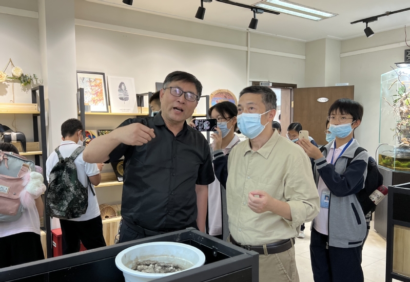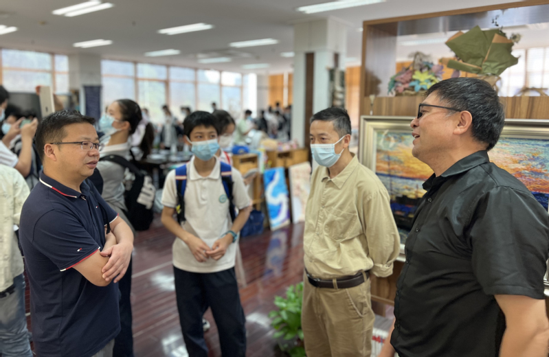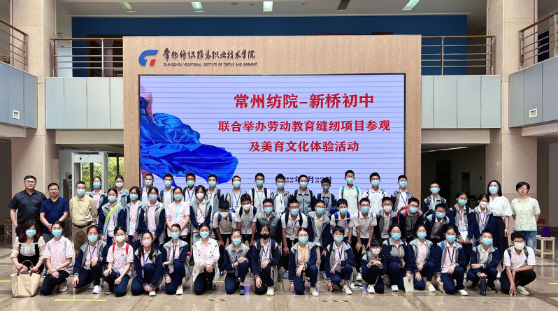 近期,在常州市教育局宣传处王前进主任的联络下,常州纺院与常州市新北区新桥初中对接,于9月22日,联合举办了劳育和美育体验活动。新桥初中副校长周宏兵、综合组教研组长阎立云、语文组教研组长胡文霞、八五班班主任高璇及钱惠老师带领八五班48名学生,共计师生53人参加了活动;常州市教育局宣传处主任王前进一同来访;文化传承与创新中心主任顾明智陪同。