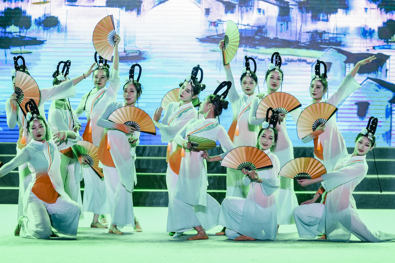 第四篇“传承·共航”中,诗朗诵《给青春画个像》展示了一代又一代中国青年,追信仰之光、逐复兴之梦,激扬青年力量,勇担青春使命;教师合唱节目《唱支山歌给党听》,引领常纺学子接力守护中国红,展现常纺师生的赤子之心。最后,晚会在歌伴舞《领航》的精彩演绎中落下帷幕。
