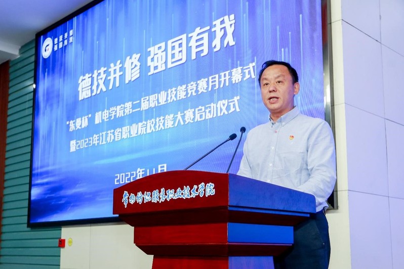 紧接着,机电学院院长肖海慧回顾了机电学院一年来所取得的高质量成果。自2021年5月第一届职业技能月伊始,通过选拔,各专业涌现出了一批技能水平较高的学生。希望通过机电学院第二届职业技能竞赛活动,为2023年江苏省职业院校技能大赛打下夯实基础,有更多的技能型人才脱颖而出!
