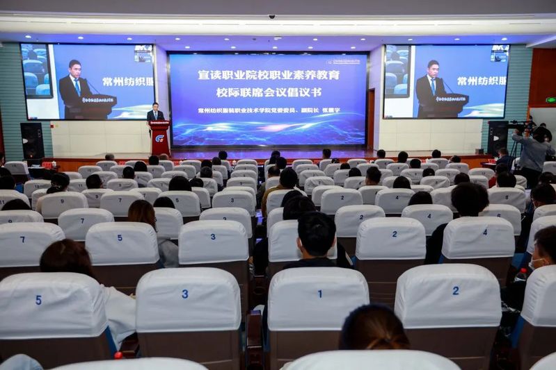 常州纺织学院张震宇副院长宣读发起职业素养教育联席机制倡议书