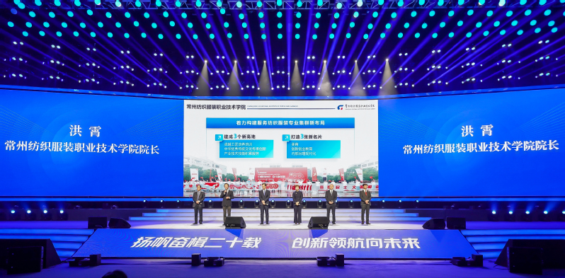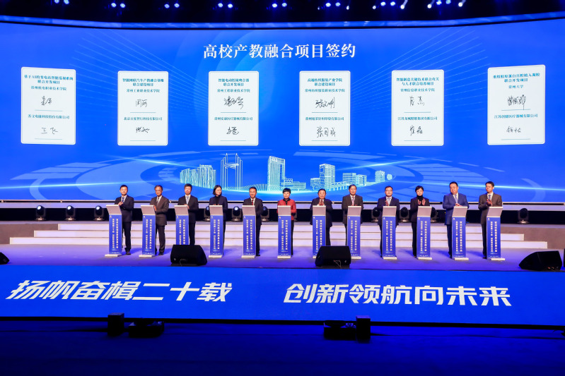 20年来,作为常州的“创新之核”——常州科教城,在推动产学研用深度融合方面作出了积极有益的探索,活动现场发布了一批高端创新平台和科技企业创新成果,有6个园区高校产教融合签约项目。校党委委员、副院长张文明代表学校与常州旭荣针织印染有限公司签订“高端纺织服装产业学院联合建设”合约。
