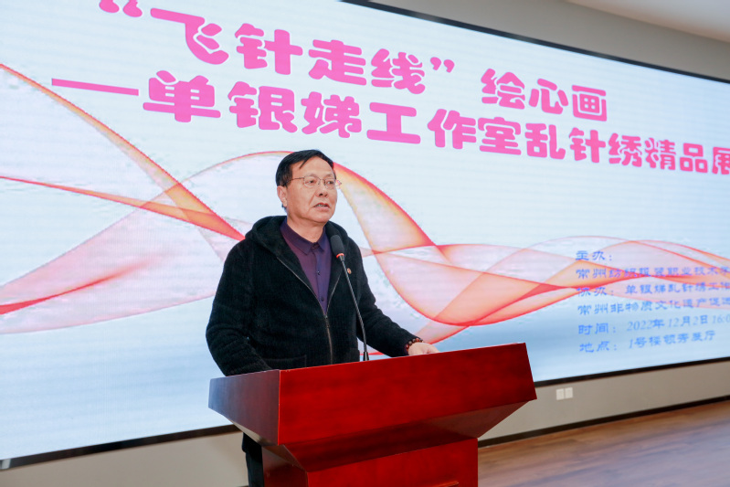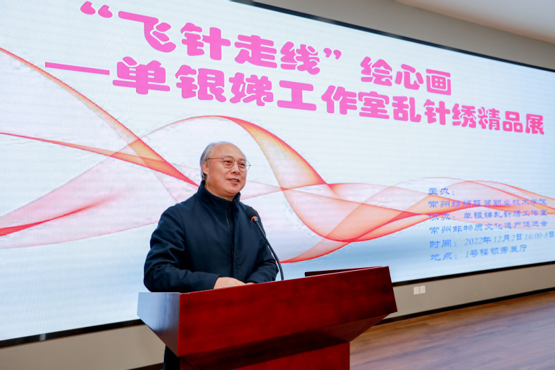 吴访升表示,我来常纺经常有机会参加各类艺术展览活动,看到很多新颖的艺术作品,时时处处得到美的熏陶,使人心情愉悦。刚才看了单银娣大师及其女儿黄莉等的作品,听了黄莉女士的介绍,被其母坚韧不拔的毅力和精益求精的工匠精神所感染,感谢黄欣会长和倪阳生会长参加今天的开幕式活动。乱针绣作为本地特色非遗,被称为中国第五大绣,与纺织服装有天然的联系,单银娣大师作为常州乱针绣第三代传人,技法全面、作品精湛,其女黄莉为第四代传人,张振宇作为工作室艺术指导,充分体现了团队意识、合作精神。党的二十大刚刚开过,要全面提高人才自主培养质量,要培养大批人工巧匠、大国工匠,要坚持传承创新、守正创新、融合创新,弘扬民族自信、文化自信,要讲好中国故事,传播中国声音,实现中华民族的伟大复兴,今天的展览与之高度契合,希望同学们从中不仅得到美的熏陶,还要培养良好的意志品质和精益求精的工匠精神。祝展览圆满成功!