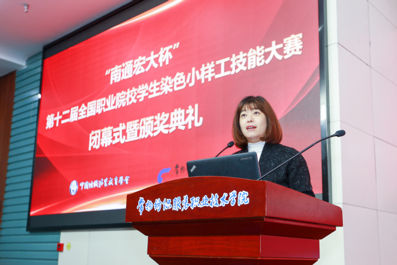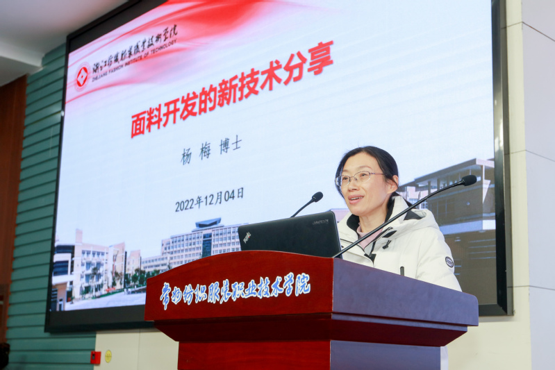 闭幕式正式开始前,浙江纺织服装职业技术学院染整技术研究所杨梅博士和南通宏大纺织仪器公司产品工程师李季晗分别作了题为《面料开发的新技术分享》和《GHES-FY纺织材料手感风格测试仪》的讲座。
