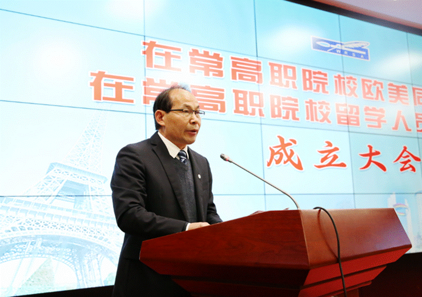 朱军代表省欧美同学会对在常高职院校欧美同学会成立表示祝贺