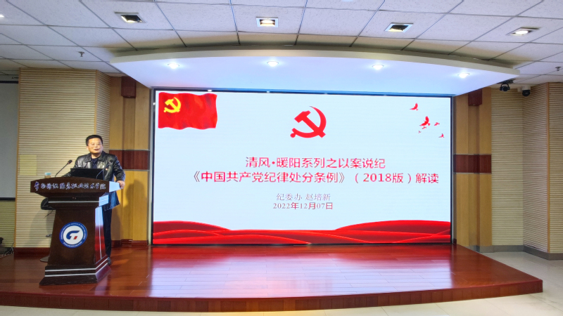 赵培新从《条例》修订的背景、《条例》的重点以及以案说纪三个方面进行讲解,他指出,《条例》贯彻习近平新时代中国特色社会主义思想,适应新时代党的建设总要求,将党的纪律建设的理论、实践和制度创新成果,以党规党纪形式固定下来,进一步扎紧了管党治党的制度笼子,为推动全面从严治党向纵深发展提供了坚强的纪律保障,充分体现了我们党一以贯之推进全面从严治党向纵深发展的坚定决心和强烈担当。讲解中结合社会上以及身边发生的各类典型案例对《条例》逐条解读,加深了党员同志们对党的六大纪律的认知和理解,帮助大家提早筑牢纪法意识、底线思维。