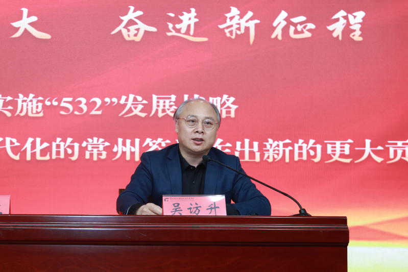吴访升就学校进一步学习宣传贯彻党的二十大精神提出了具体要求。他希望全校广大党员干部师生结合宣讲报告,全面对标对表党的二十大作出的重大部署,深刻理解“为党育人、为国育才”的重要任务,准确把握职业教育的新使命新要求,全力优化专业内涵建设、强化人才培养、推进产教融合、做好科教融汇,共同为常州“532”发展战略、“两湖创新区”建设贡献常纺智慧和力量。