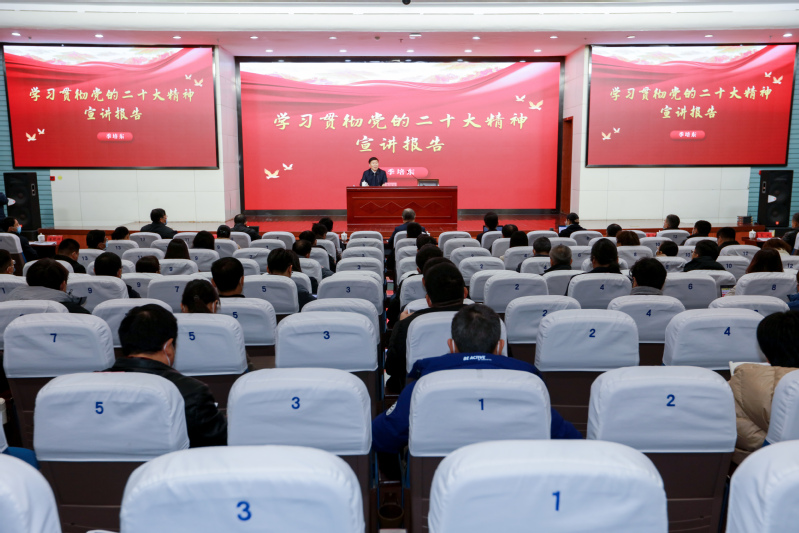 季培东从党的二十大的“新主题”、过去十年的“新变革”、马克思主义中国化时代化的“新境界”、中国式现代化的“新任务”、全面建设社会主义现代化国家的“新部署”、坚持党的全面领导和全面从严治党的“新要求”、“两个确立”的“新论断”、人才强国“新战略”8个方面,结合学习体会和工作实际,全面系统、细致深入地解读了党的二十大精神。