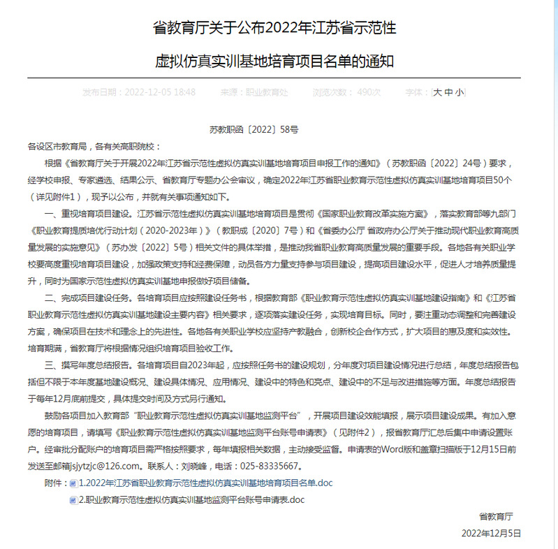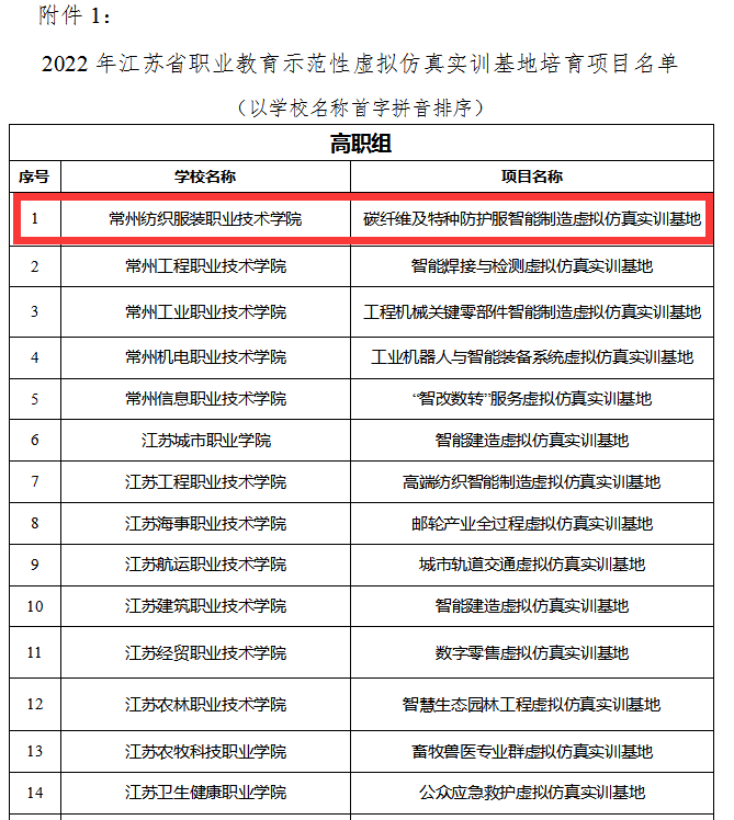 近日,江苏省教育厅公布江苏省示范性虚拟仿真实训基地培育项目名单,永利官网成功获批建设“碳纤维及特种防护服智能制造虚拟仿真实训基地”。
