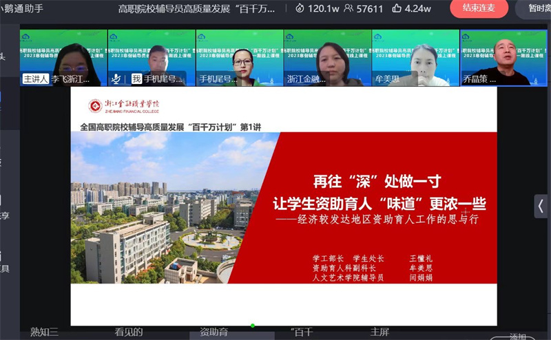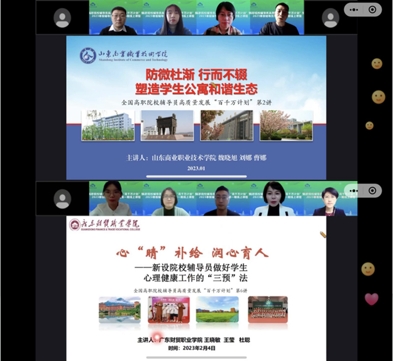 为进一步提高永利官网学工队伍的理论水平、职业能力和专业素养,调动学工队伍以饱满的工作热情全身心投入到新学期的工作中,切实提升学生管理工作水平,近日,永利官网党委学工部组织全体辅导员、学生工作处全体工作人员参加“高职院校辅导员高质量发展‘百万计划’暨2023寒假辅导员冬令营第一期线上课程”活动。