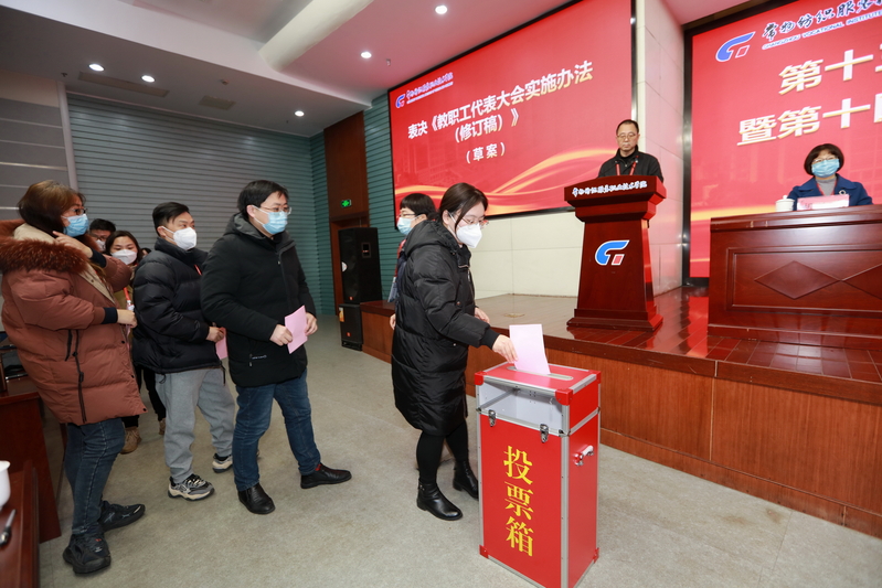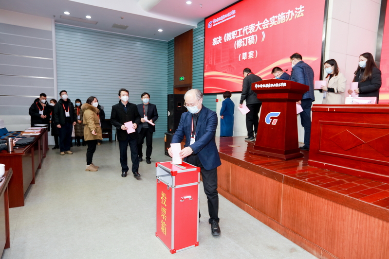 下午,教代会代表对《教职工代表大会实施办法(修订稿)》(草案)进行了表决。