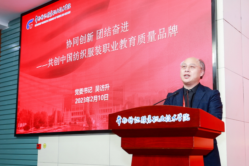 结合学校当前实际和未来发展,他提出“五要五强”:一要明时局,强在学习调研。二要定棋局,强在协同创新。三要优布局,强在改革创新。四要顾大局,强在团结奋进。五要讲格局,强在责任担当。最后,他要求全体教职员工以党的二十大精神为引领,锚定目标,抢抓机遇,聚力质量,创建品牌,为助推中国式现代化建设、“强富美高”新江苏现代化创新实践和实现“两化两型”纺织服装高职强校目标作出新的更大的贡献!
