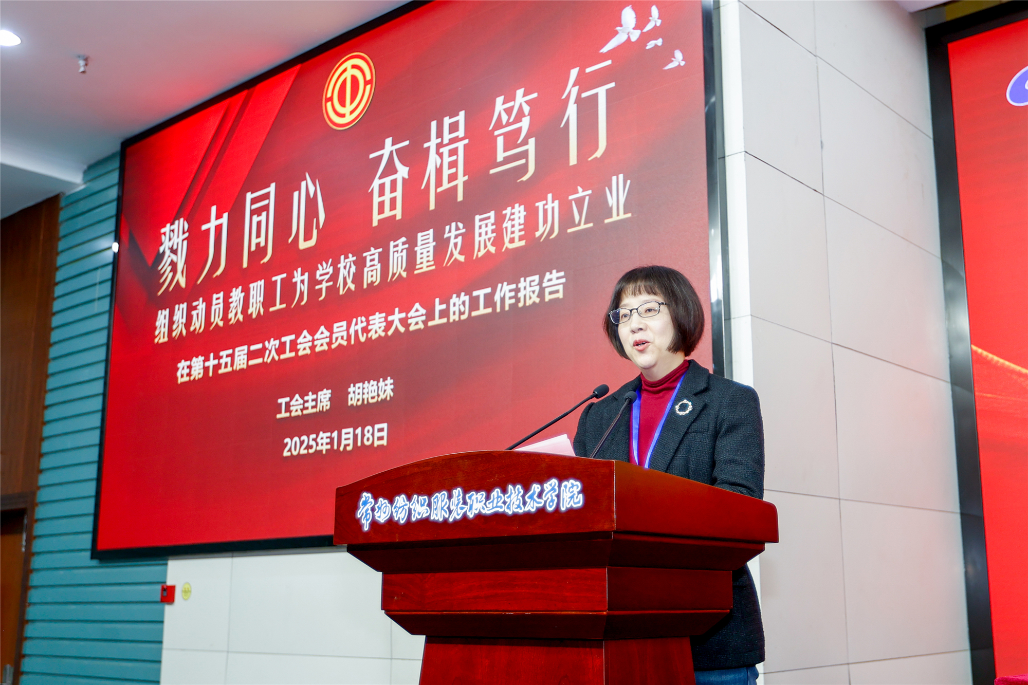 接着,代表们听取了财务处处长余志军作的《2024年度学校财务工作报告》、工会主席胡艳妹作的题为《勠力同心、奋楫笃行,组织动员教职工为学校高质量发展建功立业》的2024年度工会工作报告、工会经费审查委员会主任王坤作的《2024年度工会经费审查工作报告》、提案工作委员会主任顾广涛作的《提案工作落实情况报告》、人事处处长夏冬作的《专业技术职务任职资格评审工作办法(修订)》(草案)修订说明。