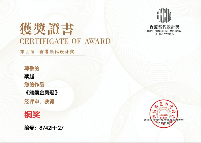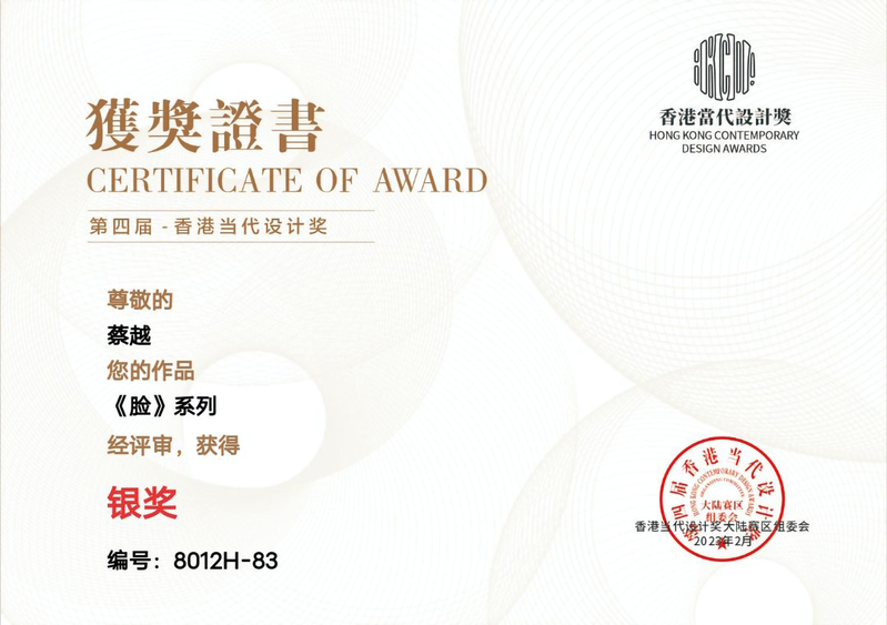 近日,永利官网服装学院人物形象设计专业形象2031班蔡越同学参加第四届香港当代设计奖竞赛,分获银奖1项、铜奖1项。
