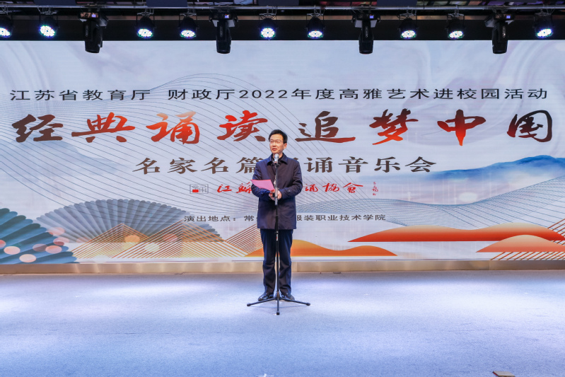 演出开始前,王顺明代表学校致辞。他向江苏省朗诵协会的各位领导专家表示诚挚的欢迎。他强调了举办高雅艺术进校园活动的重要意义,并勉励在场师生进一步传承中华民族优秀传统文化,树立民族的自信心和自豪感,坚定四个自信。