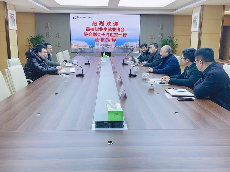 2023年2月24日下午,高校毕业生就业协会驻会副会长许世杰来永利官网调研交流,校党委书记吴访升,党委委员、副院长张文明,党政办、人事处、招就处、机电学院相关负责人参加了交流。