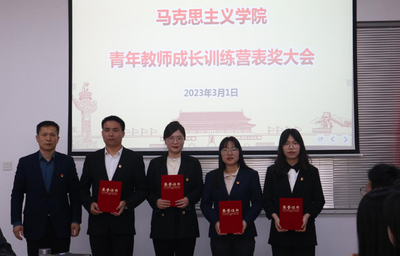 会上,陈利介绍了马院青年教师成长训练营的活动开展情况,宣读了成长训练营表奖名单,同时介绍了马院青年教师入职以来在教学、科研上获得的各类奖项及成果。洪霄、夏冬、侯喜军、陈利分别为青年教师成长训练营获奖者颁奖。马院副院长、成长训练营指导老师代表边婧、青年教师代表郝婷婷、李喆、桑伟俊分别做了交流发言。