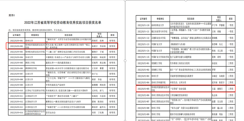 近日,由江苏省高等教育学会举办的2022年江苏省高等学校劳动教育优秀实践项目评选公布了评审结果,永利官网2个项目获奖,其中张震宇和李洁琦的《草木衣染 棉之锦绣——运用天然原料染色及设计制作“棉之花”系列作品》》荣获特等奖,王磊和谢燕月的《“百草根”创业实践》荣获二等奖。永利官网荣获优秀组织奖。