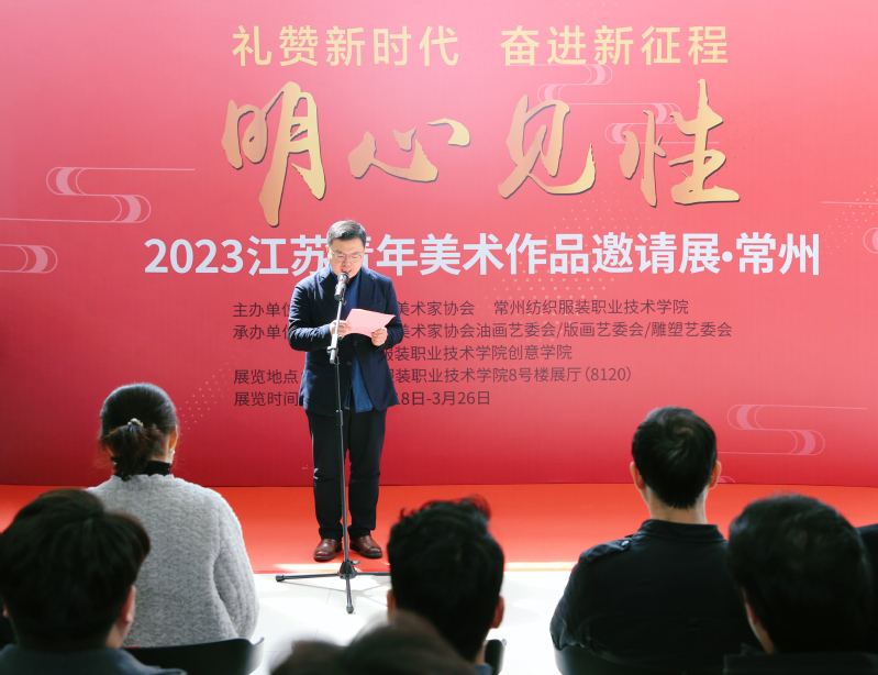 2023年3月18日上午,“明心见性——江苏青年美术邀请展”于yl6809永利官网创意学院隆重开幕,开幕式由创意学院青年教师易琨主持。展览由江苏省青年美术家协会指导统筹,yl6809永利官网主办,省青年美术家协会油画艺委会、版画艺委会、常州市青年美术家协会、雕塑艺委会和yl6809永利官网意学院联合承办,常州市美术家协会青年分会、志愿者分会协办。共展出油画、版画、雕塑作品60余件。