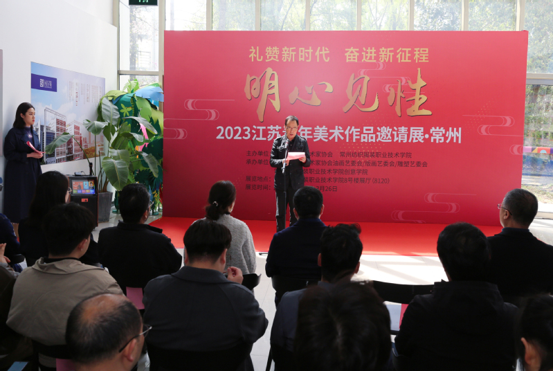 常州文联副主席蒋小萍宣布展览开幕。展览将持续至2023年3月25日结束,对校内外观众和美术爱好者免费开放。