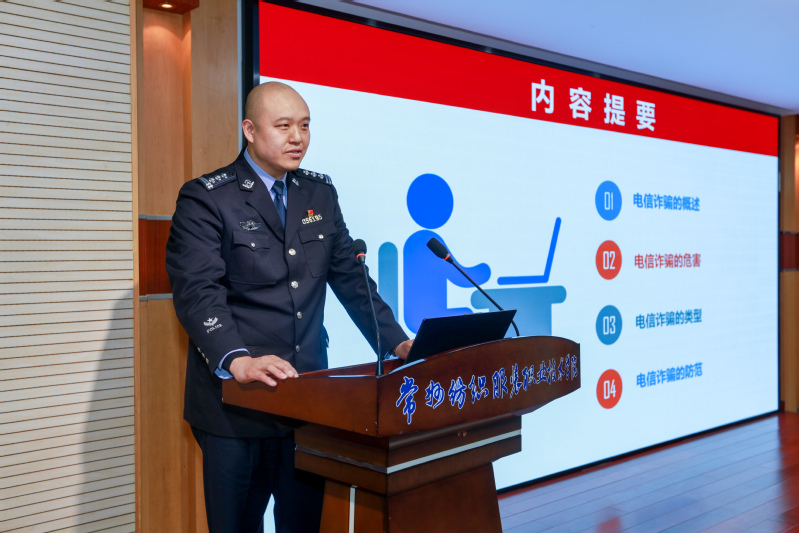 启动仪式结束后,市公安局刑警支队副支队长谢剑为常纺学子带来公益讲座《大学生电信网络诈骗的形式与预防》,通过对在常高校各类案例与相关大数据的分析讲解,为同学们进行了一场精彩纷呈的防诈普法教育。